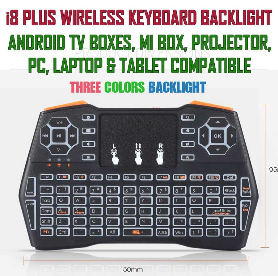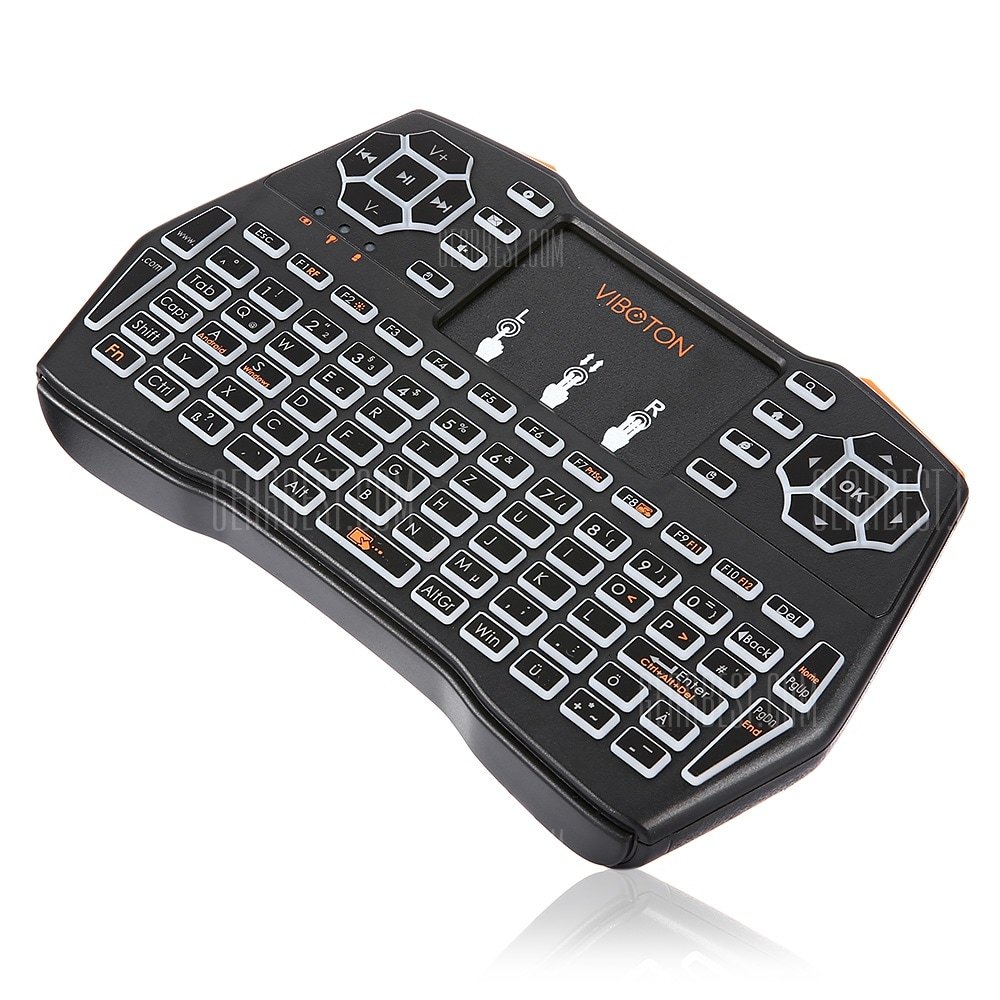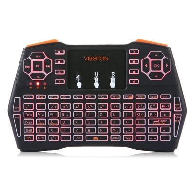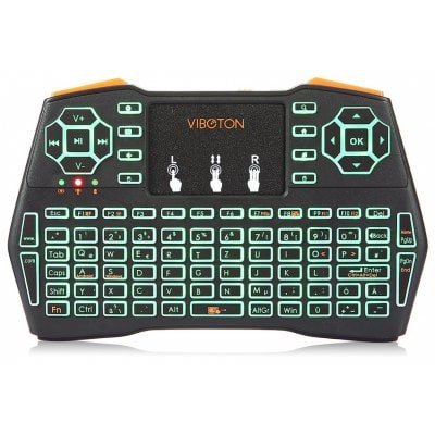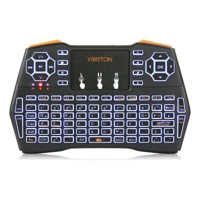 VIBOTON i8 Plus mini wireless keyboard with multi-touch pad and mouse for TV boxes, computers, Mi box, projector, Tmall box, net box, etc. Silicone keypads with good elasticity. Advanced 2.4GHz RF technology. Supporting multi-touch for your convenience, an ideal tool for you and your life!